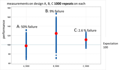 “Which design is better? Design C is preferred – Even though B has a higher average performance, C has the lowest failure rate because it performs consistently, ” Wendy Luiten